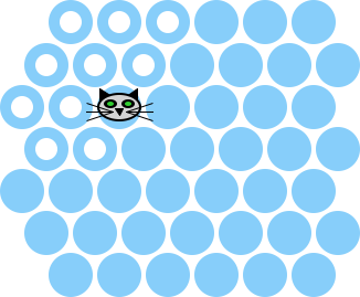 For example, in a world of size 7 with the cat at (make-posn 2 2), the circles with white centers are on the shortest path to the boundary: